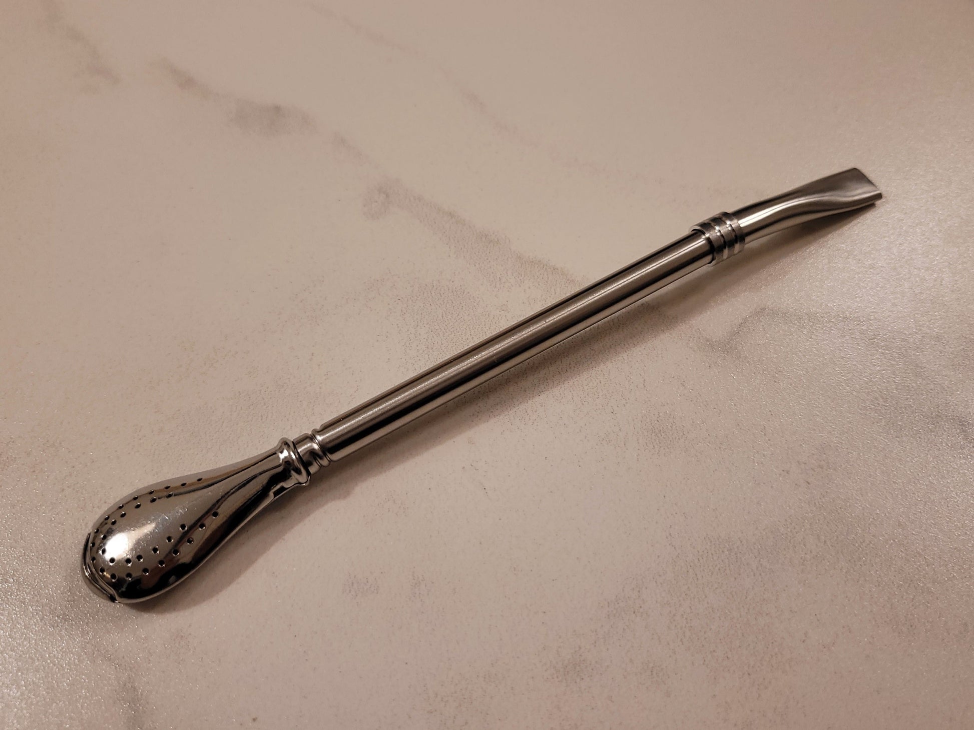 Gefertigt aus rostfreiem Edelstahl 304 überzeugt die Bombilla durch hohe Langlebigkeit, Lebensmittelsicherheit und eine glatte, pflegeleichte Oberfläche. Mit einer Länge von 15,7 cm und einem Gewicht von nur 13 g liegt sie angenehm in der Hand und eignet sich sowohl für elegante Gläser als auch für traditionelle Mate-Gefäße.